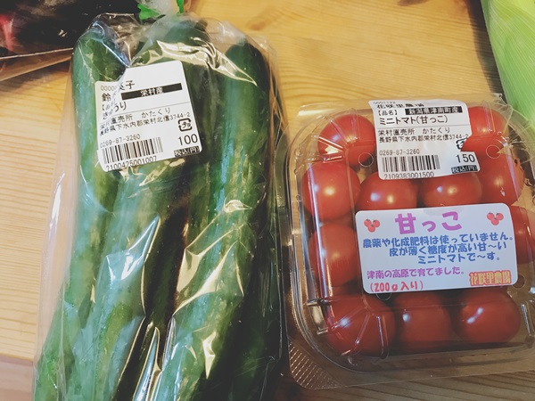 きゅうりは5本で100円、ミニトマトは糖度が高いのに150円。